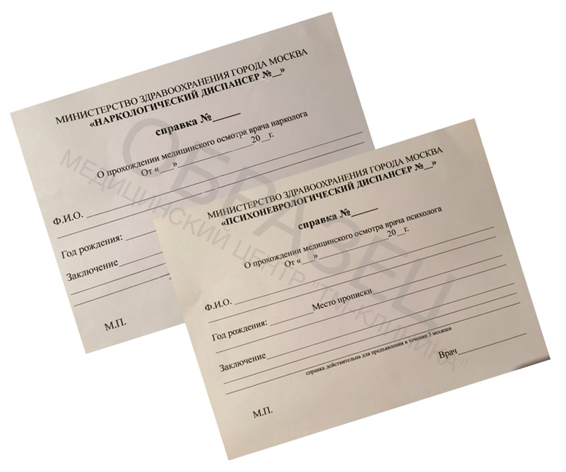 - Какой врач выдает: Психиатр, Нарколог